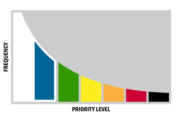As illustrated in the graph, It is expected that there will be a lot less ‘high’ or ‘severe’-rated events than ‘baseline’ or ‘low’-rated ones.
